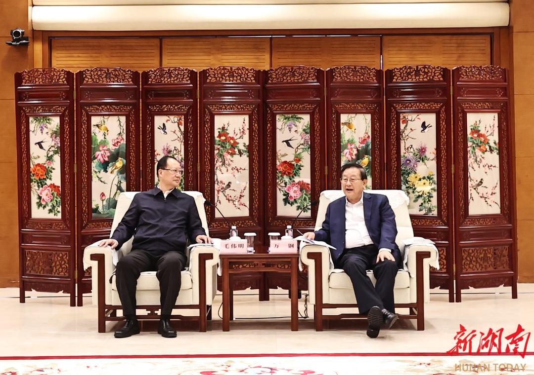 萬鋼感謝湖南省對科協工作的重視和支持。他說,湖南是全國重要的農業大省、工業大省,近年來,湖南按照習近平總書記擘畫的“三高四新”美好藍圖,持續推動科技創新與產業創新深度融合,扎實推動國家重大戰略落實落地,創造并放大“自主創新長株潭現象”,新質生產力加速培育壯大,高質量發展態勢向新向好。萬鋼說,中國科協歷來高度重視與湖南省的合作,雙方在引進科技人才、開展智庫咨詢等方面的合作成效明顯。中國科協將始終深入貫徹習近平總書記重要講話和全國科技大會精神,聚焦科技前沿領域和國家戰略需求,充分發揮中國科協的人才密集、資源富集等優勢,深化與湖南在種業創新、軌道交通、工程機械、人工智能等領域的務實合作,發揮各自優勢,協同攻堅突破,積極探索央地產學研合作的新機制、新模式,助力湖南加快實現高水平科技自立自強,加快打造具有核心競爭力的科技創新高地。
