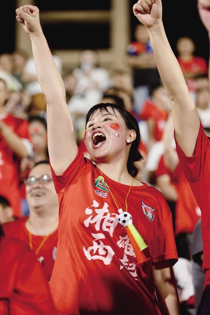 比賽結(jié)束,2∶5的比分在記分牌上定格,看臺(tái)上響起持久的歡呼聲。“我們打出了血性,我們沒(méi)有輸!我們永遠(yuǎn)會(huì)和你們戰(zhàn)在一起!”湘西球迷的吶喊道出眾人心聲。