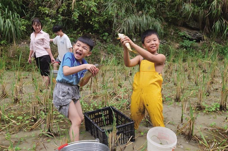 稻田里一片歡聲笑語(yǔ),一幅唯美的田園畫卷徐徐展開(kāi)。市民游客挽起褲腳,踩進(jìn)泥土,彎腰摸索、追逐魚兒,連空氣都是幸福的味道。稻花魚養(yǎng)殖是吉信鎮(zhèn)特色產(chǎn)業(yè),稻花魚以稻田里的稻花、雜草等為食,肉質(zhì)鮮嫩,營(yíng)養(yǎng)豐富,深受群眾喜愛(ài)。舉辦捉稻花魚活動(dòng),既能充分展示滿家村的鄉(xiāng)村風(fēng)貌和特色產(chǎn)業(yè),讓游客沉浸式感受鄉(xiāng)村魅力,還能促進(jìn)農(nóng)旅消費(fèi),帶動(dòng)鄉(xiāng)村旅游發(fā)展。