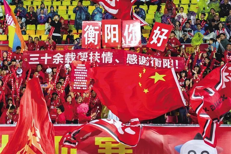 而看臺(tái)上,湘西球迷展開的紅色橫幅,如一團(tuán)不滅的火焰,在雨中熠熠生輝:“三十余載幫扶情、感謝衡陽!”“湘西衡陽一家親!”——寥寥數(shù)語,道不盡的是一段跨越山河的幫扶路。