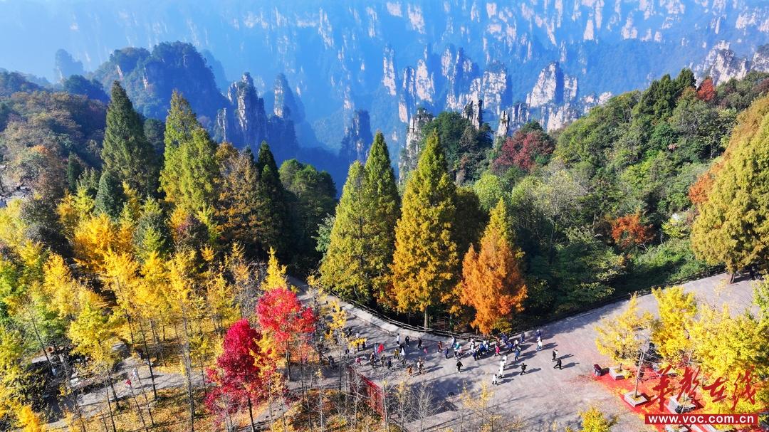 張家界國家森林公園天子山景區,暖陽照耀下的紅楓、銀杏、水杉等植物絢麗多姿,恍若進入童話世界。 鄧道理 攝