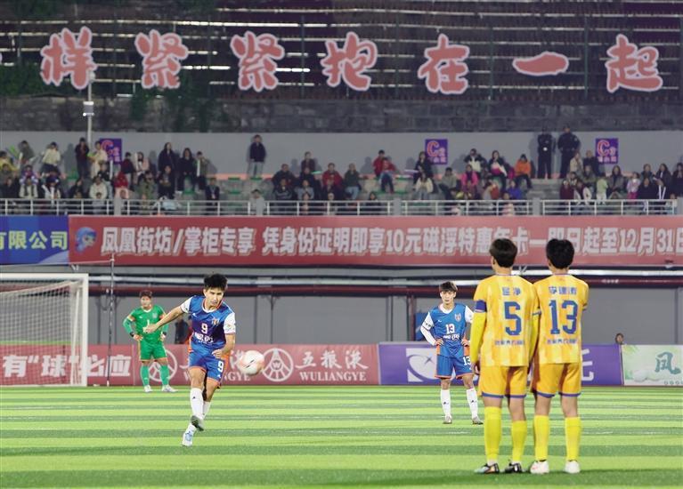 10月25日晚,“湘超”第七輪,湘西隊主場迎戰張家界隊。經過激烈角逐,山水相連的兄弟城市在家門口以平局握手言和。 團結報全媒體記者 胡承鼎 攝