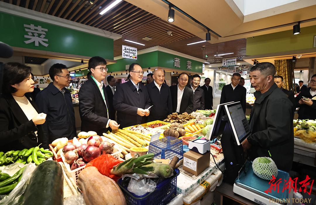 (毛偉明在蒸水農貿市場檢查“陽光計量”農貿市場建設和食品安全。)