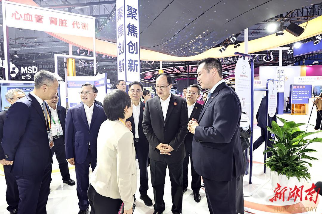 在醫(yī)療器械及醫(yī)藥保健展區(qū),毛偉明一行先后參觀了飛利浦、諾和諾德、諾華、拜耳等企業(yè)展臺(tái),了解新技術(shù)、新產(chǎn)品、新服務(wù),現(xiàn)場(chǎng)推介湖南投資機(jī)遇。他說(shuō),生物醫(yī)藥與醫(yī)療器械產(chǎn)業(yè)是湖南13條重點(diǎn)推進(jìn)產(chǎn)業(yè)鏈之一。誠(chéng)邀大家來(lái)湘共促技術(shù)變革、共拓產(chǎn)業(yè)空間,與湖南高質(zhì)量發(fā)展同頻共振、在未來(lái)賽道攜手奔跑。
