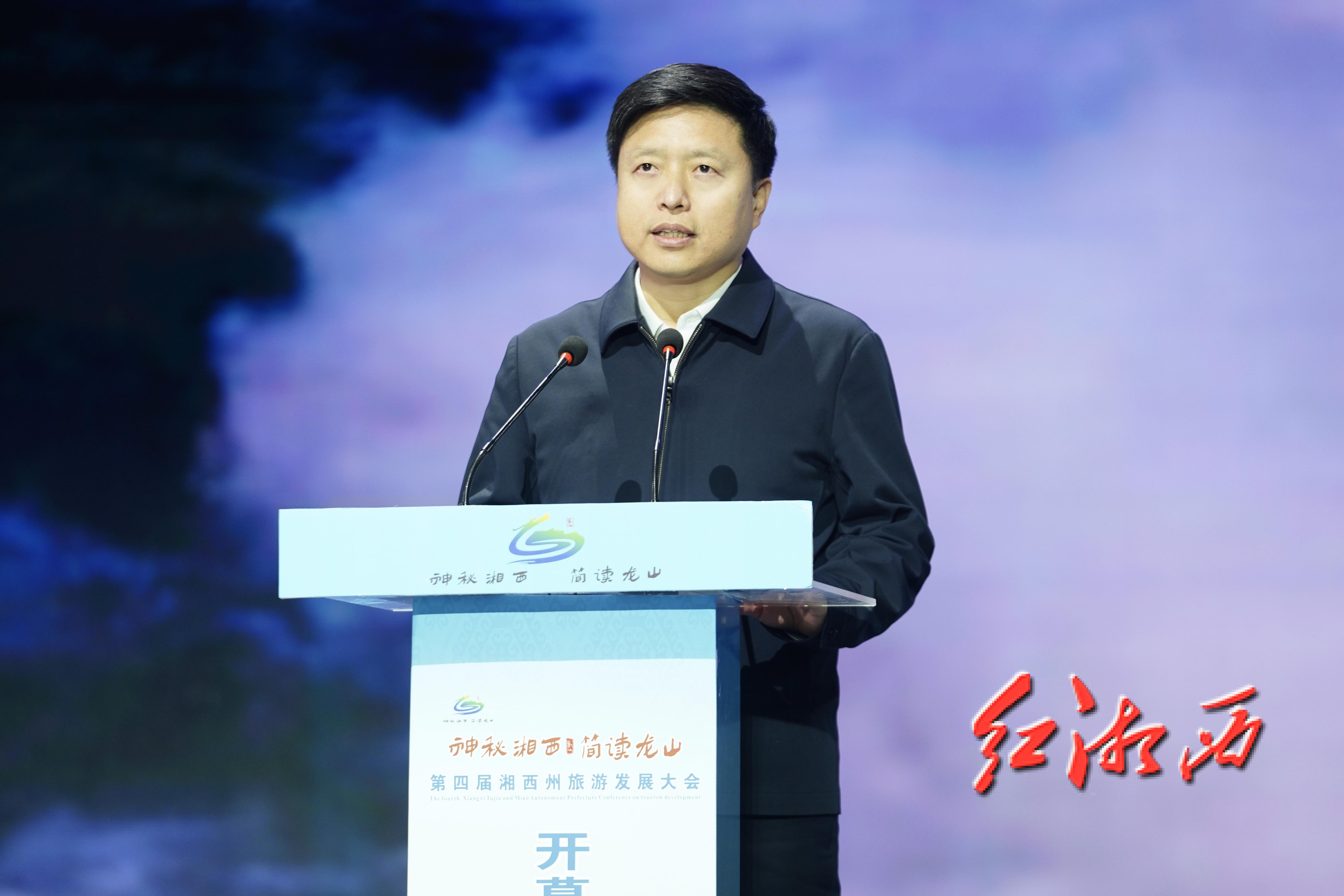 劉濤代表州委、州政府向參加此次旅發(fā)大會的嘉賓表示歡迎。他說,湘西,是一個山川風(fēng)物均可入畫的地方。群山秀麗,溝壑縱橫之間,勾勒出心醉神迷的畫卷。湘西,是一個田園牧歌寫意鄉(xiāng)愁的地方。每一種田園風(fēng)光和民族風(fēng)情,都是文化的綻放、歷史的沉淀、湘西的名片。湘西,是一個滿載光榮與夢想的地方。無數(shù)湘西兒女用鮮血和生命捍衛(wèi)民族獨立,書寫了可歌可泣的英雄史詩。神秘湘西,簡讀龍山。這里發(fā)掘的三萬八千枚里耶秦簡,書寫九州一統(tǒng)的歷史傳奇,印鑒中華文化的源遠(yuǎn)流長。茨巖塘流傳紅二方面軍轉(zhuǎn)戰(zhàn)湘西的英勇事跡,詮釋了“星星之火,可以燎原”的精神。烏龍山大峽谷用億萬年風(fēng)光讓奇洞、奇山、奇水成為景觀一絕。特色村寨惹巴拉,三山套三河、三河繞三寨,靈動展現(xiàn)武陵山區(qū)最完整的原始土家文化。來到龍山,總有一處讓人沉醉。山水有相逢,來日皆可期。湘西州正致力打造國內(nèi)外知名生態(tài)文化旅游區(qū)。劉濤向社會各界發(fā)出邀請,誠邀大家常來湘西共享文旅盛宴,共尋詩與遠(yuǎn)方,共謀美好未來,并宣布第四屆湘西州旅游發(fā)展大會正式開幕。