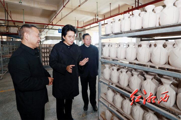 陳華走進保靖縣金鋒陶瓷公司、軒華公司,調研產業轉型升級、產品迭代及綠色生產等情況。陳華指出,企業是高質量發展的主力軍,既要通過轉型升級謀發展,也要守住安全底線。各級各部門要堅持問題導向,主動靠前服務、精準幫扶,推動企業在發展和安全的軌道上行穩致遠。