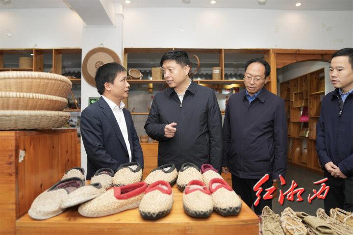劉濤在吉信鎮易地扶貧搬遷安置區小草手工藝品公司鄉村車間調研。團結報全媒體記者 劉煒 攝