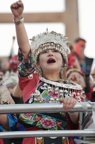 看臺上,湘西的球迷們盛裝出席,身穿絢麗的民族服飾,成為最靚麗的風景線。他們手中高舉的橫幅,書寫著超越足球的情懷。“祖國統一民族團結”“東方紅太陽升中國出了個毛澤東”,這些話語,既是對偉人故鄉球隊的崇高敬意,也是兩地血脈相連、共享歷史榮光的真摯表達。