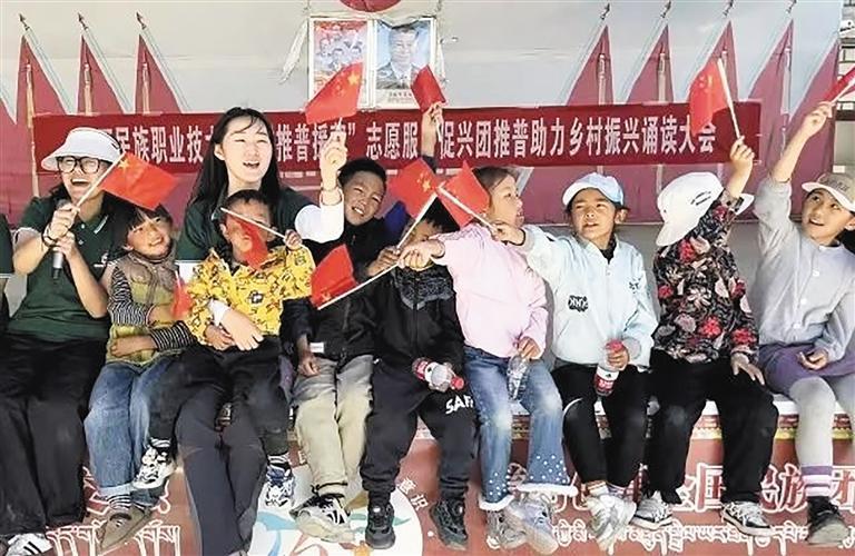 湘西民族職業(yè)技術(shù)學(xué)院開展“推普援藏”志愿服務(wù)活動,組織青年教師遠(yuǎn)赴西藏為小朋友推廣普通話,鑄牢中華民族共同體意識,助力鄉(xiāng)村振興。
