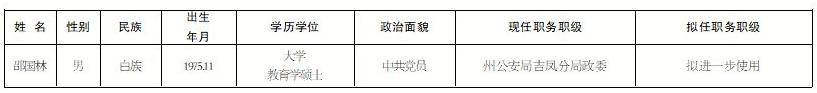 加強對干部選拔任用工作的監督,提高識別和任用干部的準確度,現對州委常委會會議研究決定的下列1名擬任職人選予以任前公示: