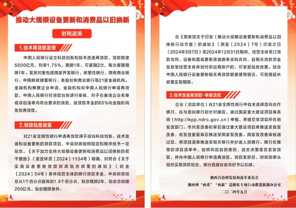 湘西州推動大規模設備更新和消費品以舊換新:財稅政策